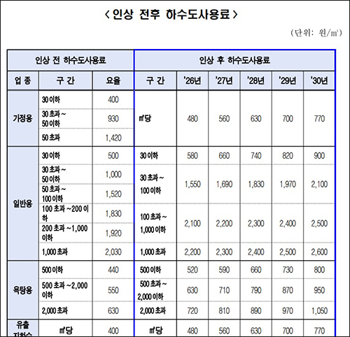 서울시는 29일(월) 「서울특별시 하수도 사용 조례 일부개정조례」가 공포됨에 따라 하수도사용료 인상을 최종 확정했다고 밝혔다.