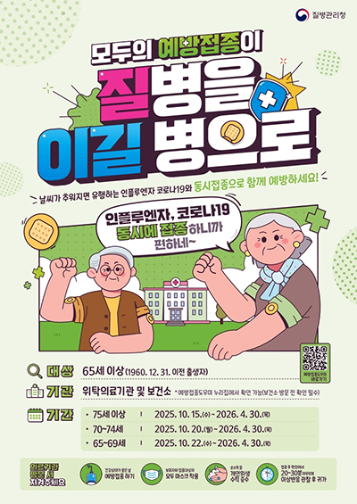 접종은 연령별로 순차 진행된다. ▴75세 이상은 15일부터, ▴70~74세는 20일부터, ▴65~69세는 22일부터 시작하며, 종료일은 2026년 4월 30일이다.