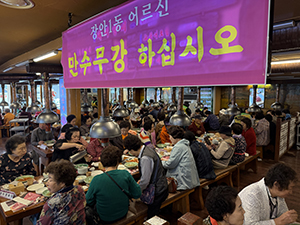 장안1동, 2025년 경로잔치 성료동대문구 장안1동 마을행사추진위원회(위원장 한인희)에서는 경로의 달을 기념하여 지난 16일 오전 11시부터 장한평역 부근에 있는 양촌리 장안점(천호대로 295-2)에서 어르신들을 위한 경로잔치를 성황리에 개최했다고 밝혔다.