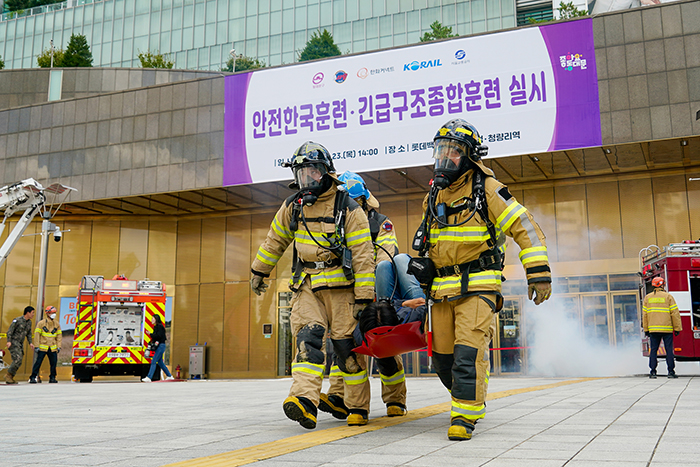 이번 훈련은 최근 발생한 열차 방화 사건을 모티브로, 다중이용시설에서의 복합 화재와 유해가스 누출 상황을 가정한 실전형 시나리오로 진행됐다. 동대문소방서, 코레일, 군부대 등 11개 기관과 민간단체 600여 명이 참여해 초기 대응부터 수습·복구까지 약 1시간 30분간 훈련을 펼쳤다.