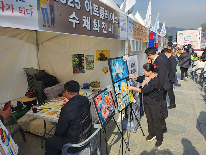 아트플레이스 전시 부스에서는 수채화 체험 프로그램에서 완성된 작품들이 전시돼 작품 구매 문의가 이어질 정도로 큰 관심을 받았다.