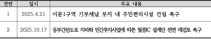 - 중랑천 제방길 내 월릉IC 진입 램프 설계안을 변경하여 주민 안전 확실하게 확보할 것