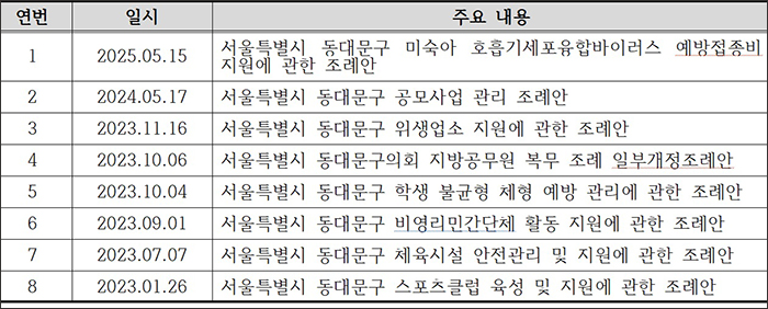 앞으로도 구민의 삶을 가까이에서 살피고, 현장 중심의 의정활동을 통해 모두가 안전하고 행복한 동대문구를 만드는 데 최선을 다하겠습니다.