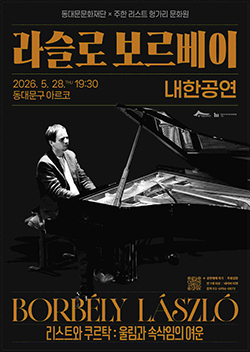 라슬로 보르베이는 뉴욕 카네기홀, 바르샤바 필하모닉 등 세계적인 무대에서 활약해온 거장으로, 현재 부다페스트 리스트 음악대학 교수로 재직 중이다. 프로그램은 ‘리스트와 쿠르탁: 울림과 속삭임의 여운’을 주제로, 낭만주의와 현대 헝가리 음악을 교차해 선보인다.