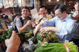 연일 35℃를 넘나드는 14일(화) 오후, 유덕열 동대문구청장과 김동연 경제부총리 겸 기획재정부 장관이 서울의 대표적 전통시장인 청량리청과물시장을 방문했다.
