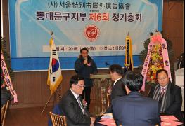 서울특별시옥외광고협회 동대문구지부(지부장 한상선)은 29일 오후 6시 30분 제기동 소재 라온9 스시뷔페에서 한환호 사무국장의 사회로 제6회(통합35회) 정기총회를 가졌다.