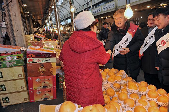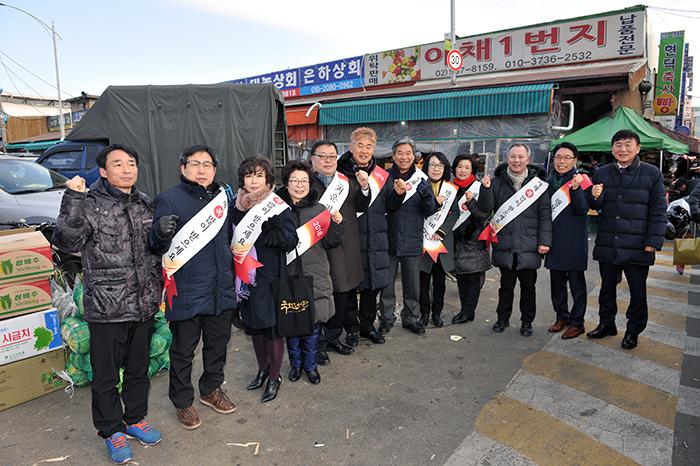 자유한국당 임원갑 동대문갑위원장이 동대문구의회 주정 의장 등과 함께 12일 오전 10시 청량리 청과물시장 등을 방문하여 시장상인들로부터 세밑 민심을 들었다.
