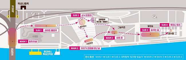 ▲ 2025 서울라이트 한강 빛섬축제 전시 & 행사 배치도 |
