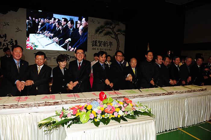2016년 1월 8일 열린 신년회 시루떡 절단 모습(동대문 이슈 자료사진)