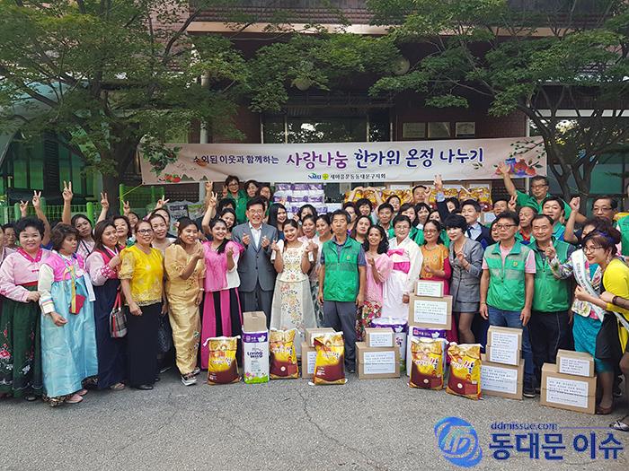 - 17일 오후, 동대문구민회관 앞뜰에서. 총 200세대에게 송편3㎏, 휴지30롤, 온정박스, 쌀10㎏ 등 지원