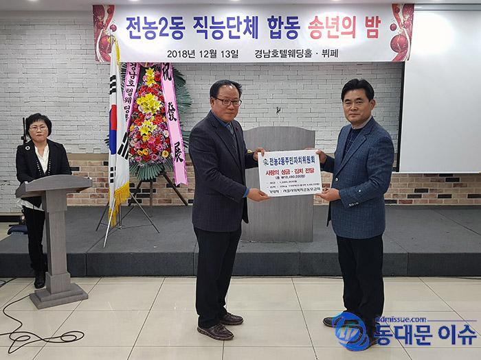 서울 동대문구 전농2동(동장 안중회)는 13일 오후 6시 30분 경남호텔에서 ‘전농2동 직능단체 합동 송년의 밤’ 행사를 성황리에 가졌다.