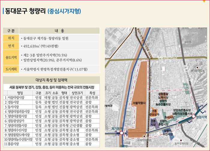 | ▲서울 동대문구 청량리동 제기동에 설치되는 49만㎡의 중심지 재생지역으로 한방, 농수산물, 청과물 등의 자원을 활용한 특화산업을 육성한다. |