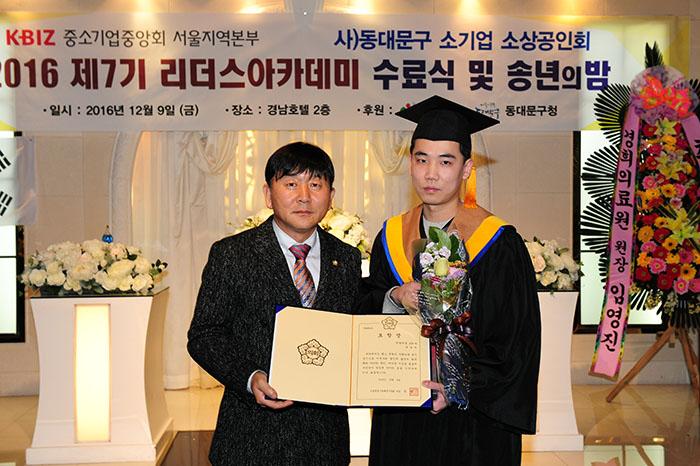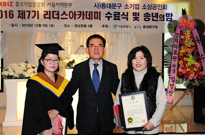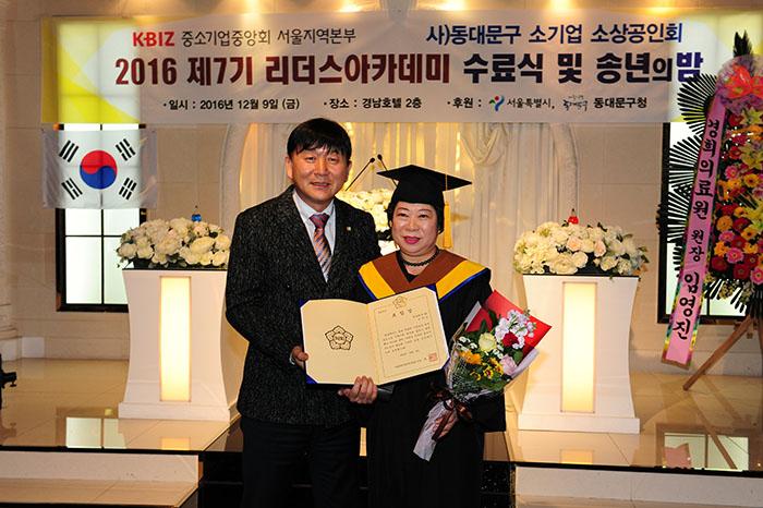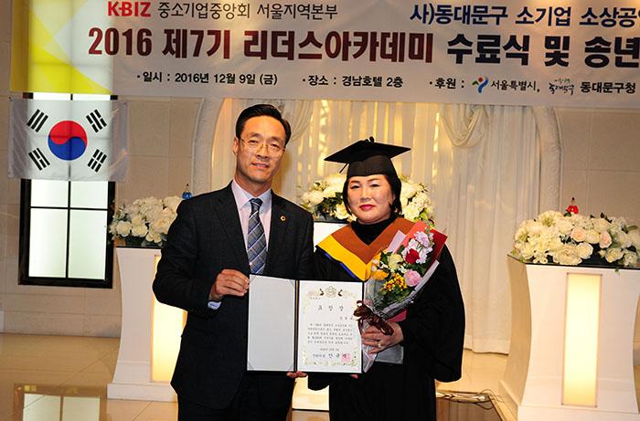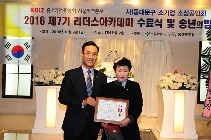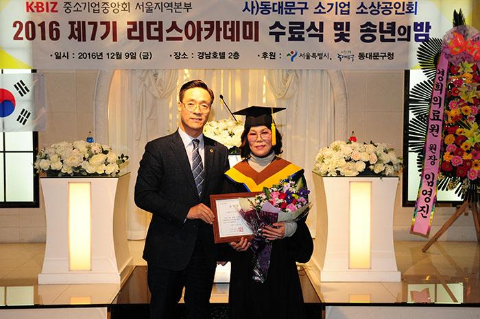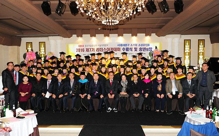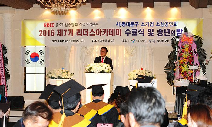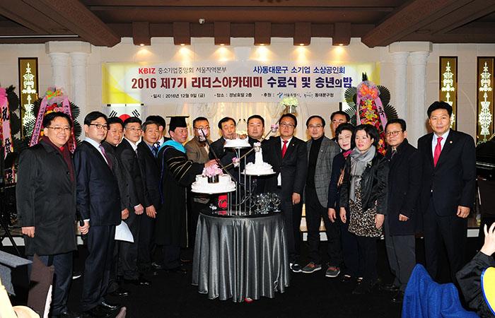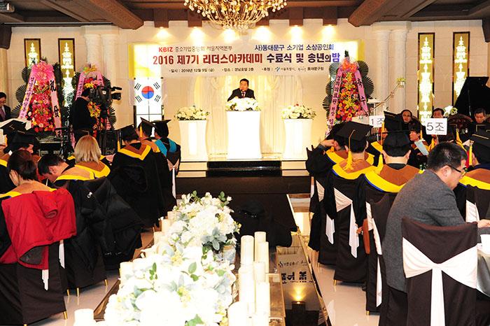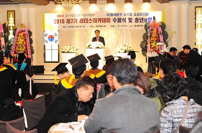 사)동대문구 소기업소상공인회(이사장 김봉식, 이하 소상공인회)는 지난 12월 9일 오후 6시 경남호텔 2층에서 ‘2016년도 제7기 리더스 아카데미 수료식 및 송년의 밤“행사를 가졌다.