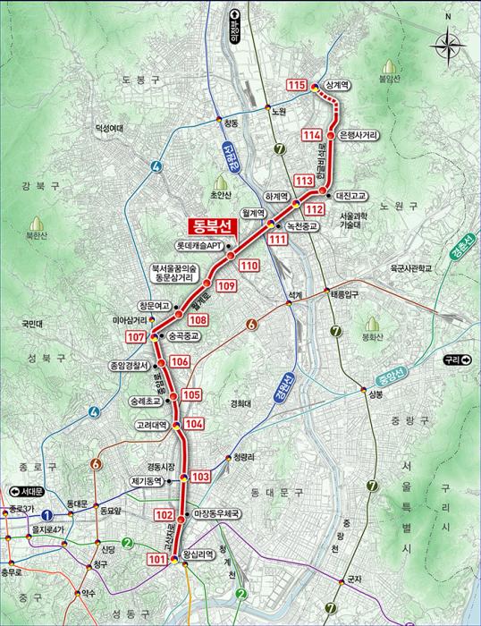 지하철 1호선(제기역), 지하철 4호선(상계역, 미아사거리역), 지하철 6호선(고려대역), 지하철 7호선(하계역), 경원선(월계역), 지하철 2·5호선, 경의·중앙선, 분당선(왕십리역) 등 9개 노선 7개 정거장에서 환승이 가능해 이용 시민들의 편리성을 높였다.