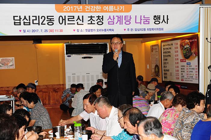 민병두 국회의원은 25일 오전 답십리동 소재 옛골명가에서 답십리2동 희망복지위원회에서 주최한 저소득층 어르신들의 건강한 여름나기 삼계탕 행사에 참석하여 어르신들을 위로하고 관계자들을 격려했다.