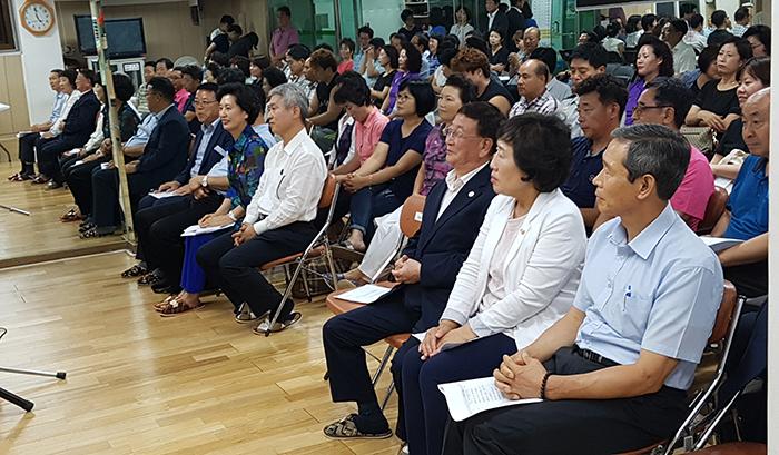 김충선 한국당 당협위원장은 인사말에서 “수은주가 30도를 오르내리는 피서철 맞아 장안2동 마을총회 축하한다”며 “오늘 회의가 지역발전에 대안과 의견제시가 되는 자리가 되길 바란다‘고 인사했다.