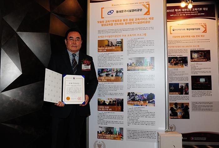 지난 10월 26일의 ‘2016 전국도서관운영평가’ 국무총리 표창 수상에 이번엔 고품격 ‘2016년 제5회 대한민국 교육기부 대상’마저 수상하는 동대문구시설관리공단의 앞날에 큰 기대와 박수를 보낸다.
