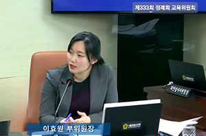 서울특별시의회 교육위원회 소속 이효원 의원(국민의힘, 비례)은 지난 10일 열린 제333회 정례회 서울시교육청 교육정책국 정책 질의에서 서울시 교원의 성비위 및 음주운전 등 중대 범죄에 대한 징계 수위가 지나치게 낮다며 실효성 있는 대책 마련을 촉구했다.