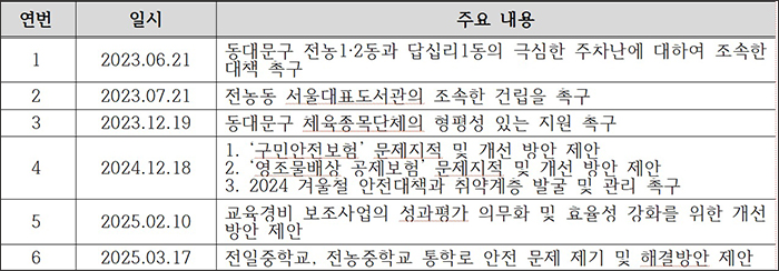 - 전농동 열린방과후어린이집 및 어르신쉼터 정비사업 예산 확보, 정책 제안