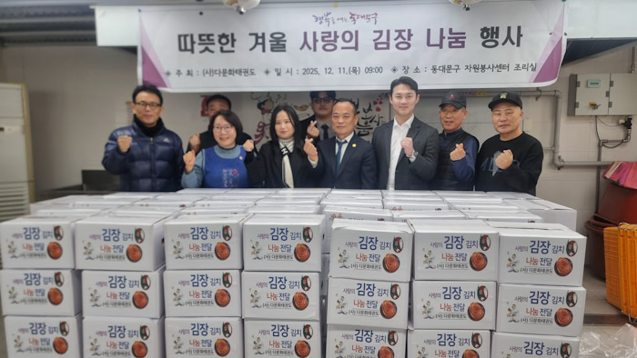 (사)다문화태권도(회장 박성현)는 12월 11일 오전 답십리1동 자원봉사센터 조리실에서 ‘2025 사랑의 김장나눔 행사’를 열고 다문화가정을 위한 겨울나기 지원 활동을 펼쳤다.