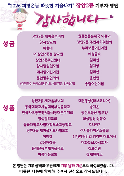 장안2동, “2026 희망온돌 따뜻한 겨울나기” 목표 초과 달성